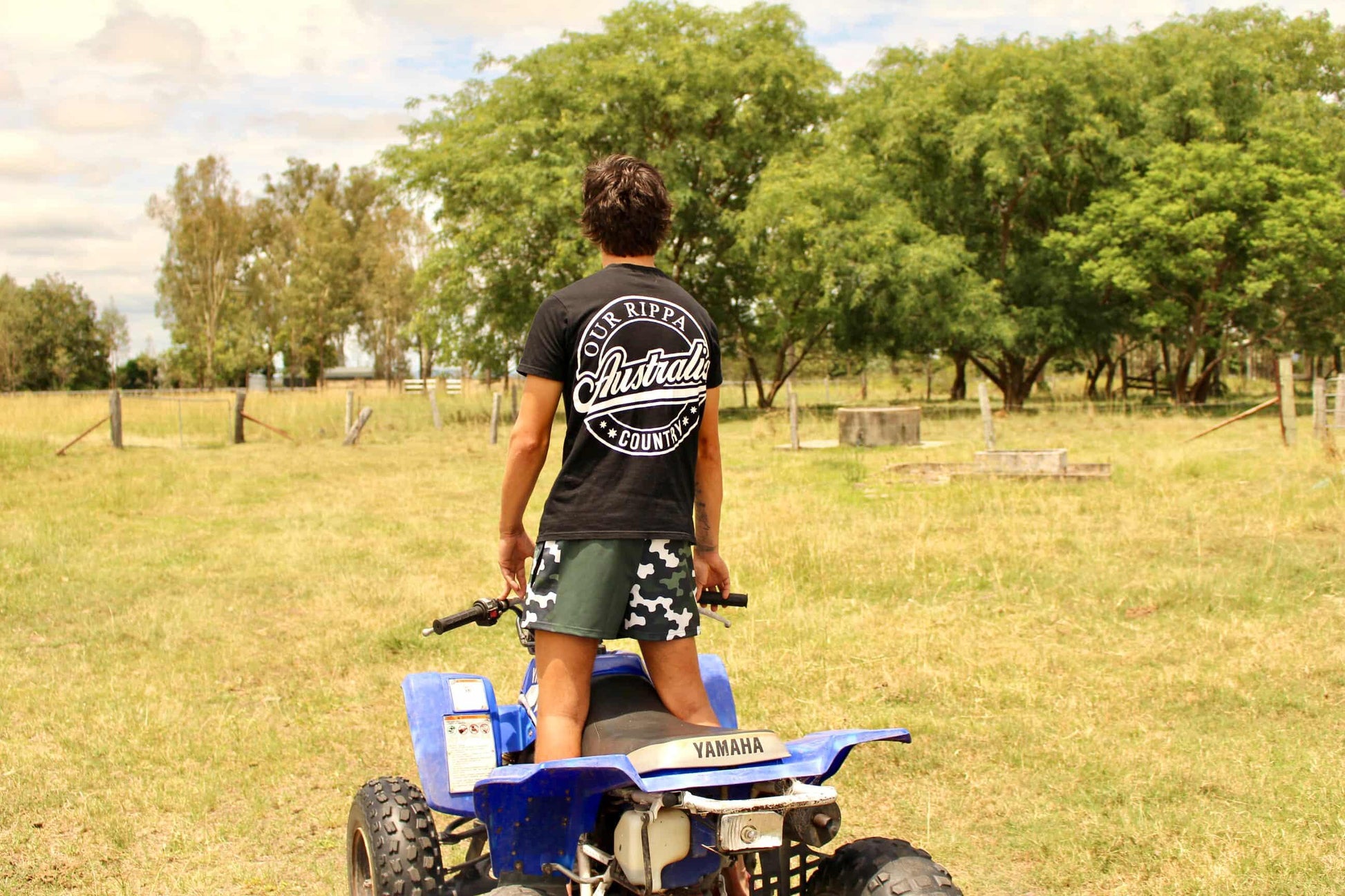 β Sleek Split Design: One side features a bold black and white camo print for that street-smart edge, while the other keeps it clean with solid black, complete with the iconic Our Rippa Country Australia logo.