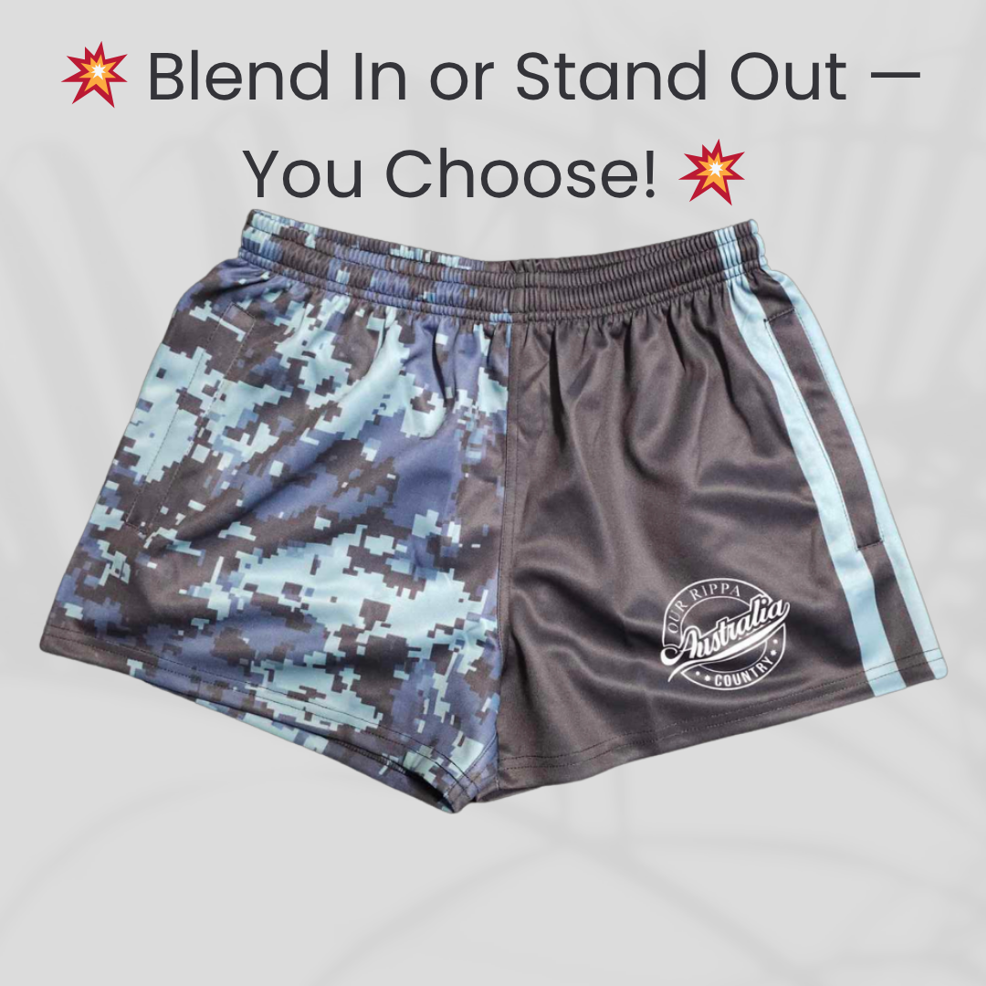 Our Blue Camo & Khaki Rugby Shorts bring the perfect balance of bold and rugged. Whether you're hitting the trails, the field, or just kicking back, these shorts are built for comfort with a tough edge.
